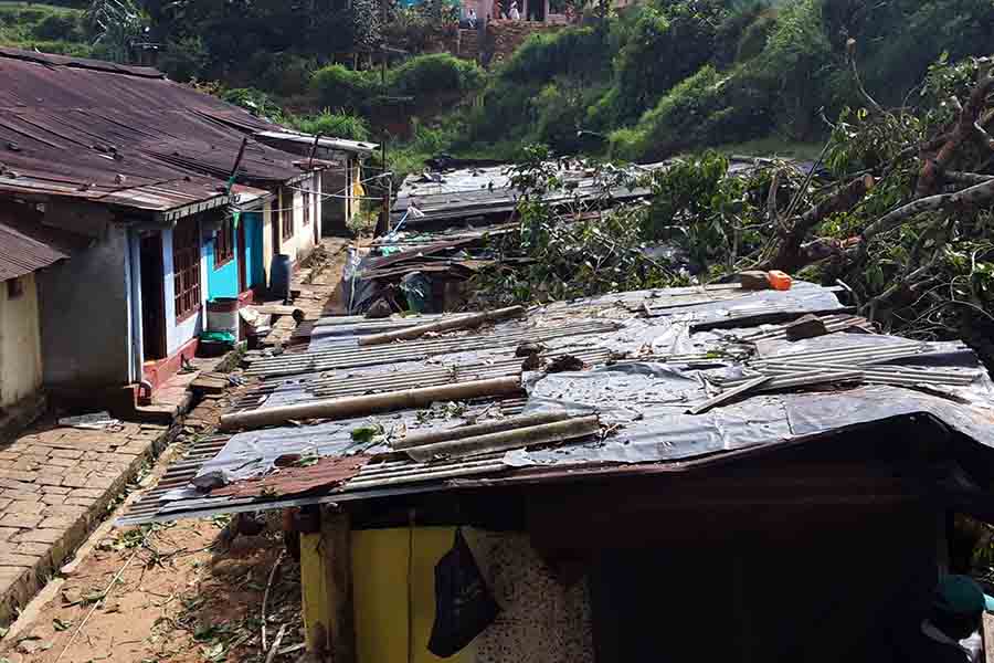 லிந்துலை பொலிஸ் பிரிவுக்குட்பட்ட தலங்கந்த தோட்டத்தில் 14 வீடுகள் கொண்ட தொடர் குடியிருப்புக்குப் பின்புறத்தில் உள்ள முனியாண்டி ஆலயத்தில் காணப்படும் ஆலமரத்தின் கிளை முறிந்து விழுந்ததால் குடியிருப்பு வீடுகள் சேதமாகியுள்ளன.