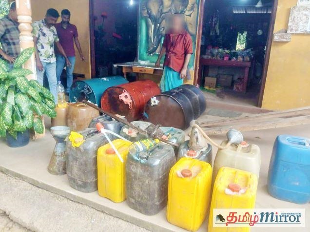 இதன்போது மூன்று பீப்பாய்களில் வைக்கப்பட்டிருந்த 120 லீற்றர் டீசல் மற்றும் 11 கொள்கலன்களில் (Cans) இருந்த பெட்ரோல் என்பன பொலிஸாரால் கைப்பற்றப்பட்டுள்ளன.