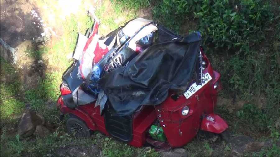 ஹட்டனிலிருந்து நோர்வூட் பகுதிக்குச் சென்ற ஓட்டோ ஒன்றே இவ்வாறு குடைசாய்ந்துள்ளது.