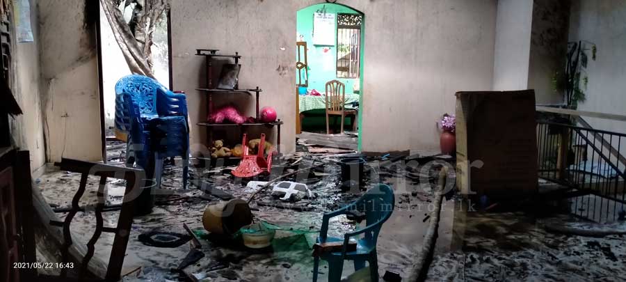 இச்சம்பவத்தில் வீட்டிலிருந்த பல இலட்சம் பெறுமதியான உபகரணங்கள், பாடசாலை உடமைகள் என்பன சேதமடைந்துள்ளன என்று, குறித்த நபரின் மனைவி பொலிஸில் முறைப்பாடு செய்துள்ளார்.