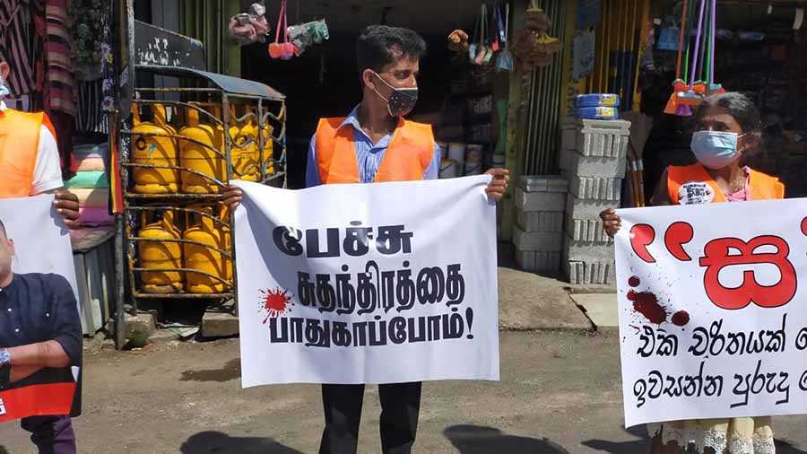 'இந்த அரசாங்கம் ஊடகங்களை அச்சுறுத்துகின்றது. அரசியல்வாதிகளுக்கு கருத்து வெளியிடும் சுதந்திரம் இல்லை. இவற்றைக் கண்டிக்கின்றோம்' என ஆர்ப்பாட்டத்தில் ஈடுபட்டவர்கள் கருத்துரைத்தனர்.