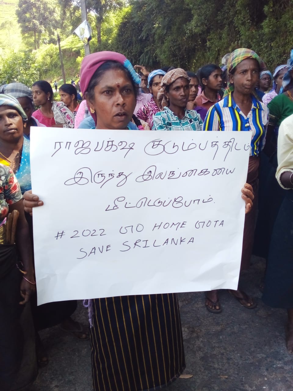 ஜனாதிபதியை பதவி விலகுமாறு வலியுறுத்தி, கவரவில மற்றும் ஓல்டன் ஆகிய தோட்டத் தோட்டத்தொழிலாளர்கள், எதிர்ப்பு போராட்டம் ஒன்றை இன்று முன்னெடுத்தனர்.
