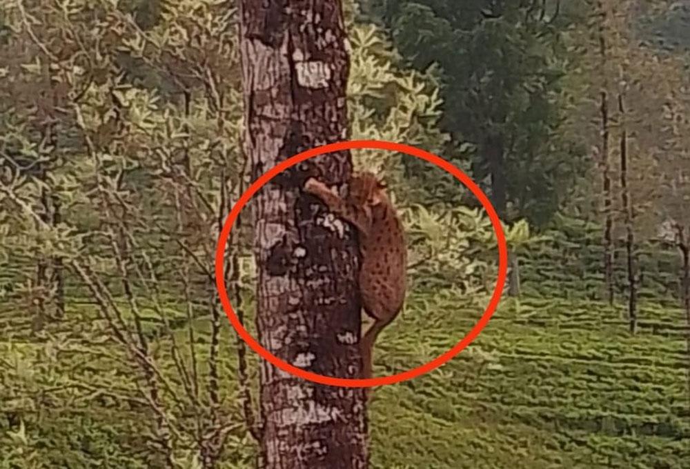 தேயிலைத் தோட்டத் தொழிலாளி ஒருவர், தனது நாயுடன் வேட்டைக்குச் சென்றபோது, நாய்களின் கூட்டத்திடமிருந்து தப்பிக்க மரத்தில் ஏறிய சிறுத்தை குட்டியை கையடக்கத் தொலைபேசியில் படம் பிடித்தார். இந்த சம்பவம், பொகவந்தலாவ பகுதியில் செவ்வாய்க்கிழமை (03) இடம்பெற்றது.