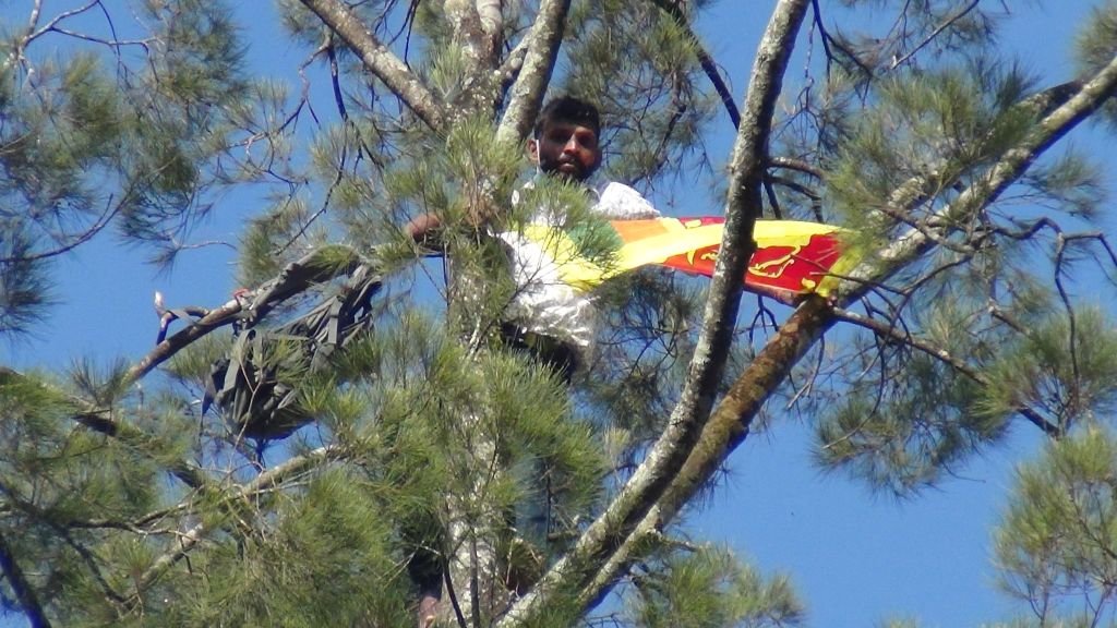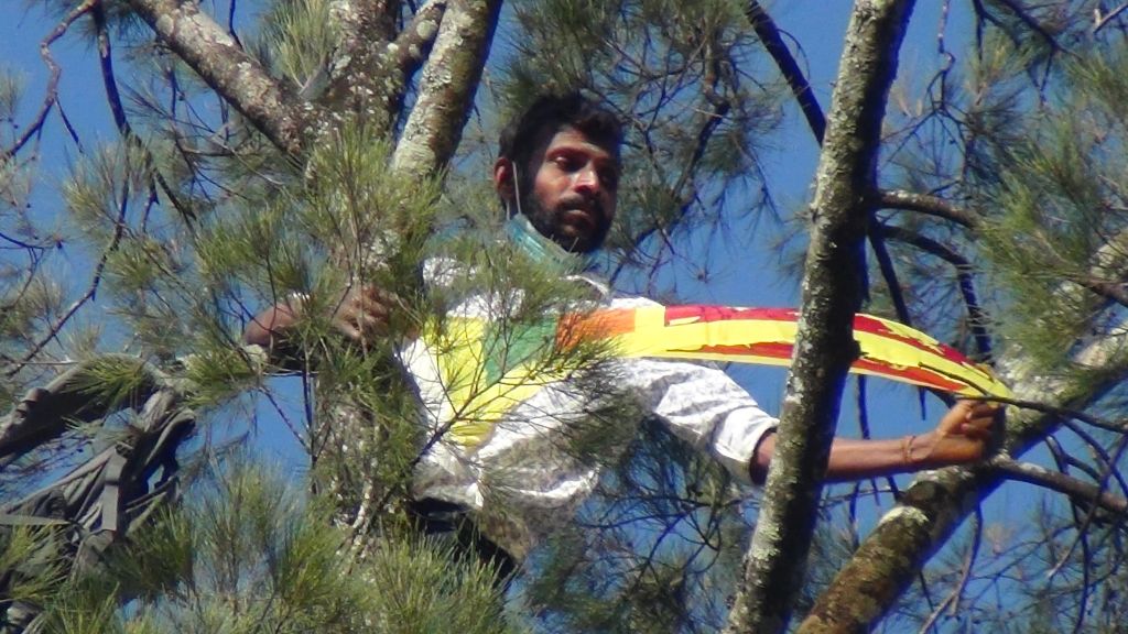 ரம்புக்கனை தூப்பாக்கிசூட்டில் உயிர்ழந்த நபருக்கு நீதி கோரி, இன்ஜெஸ்ரி தோட்டத்தைச் சேர்ந்த நபர் ஒருவர், 100அடிஉயரமான மரத்தில் ஏறி போராட்டமொன்றை முன்னெடுத்துள்ளார்.