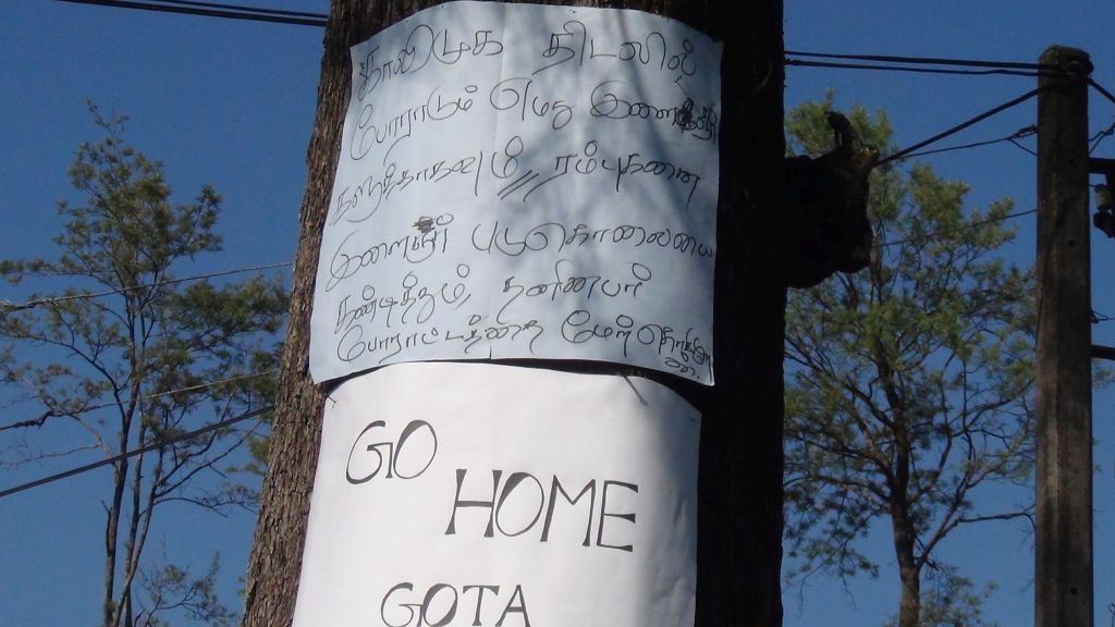 ரம்புக்கனை பகுதியில் தூப்பாக்கி சூட்டில் பலியான நபருக்கு நீதி கோரியும் அத்தியாவசிய பொருட்களின் விலையேற்றத்தை கண்டித்தும் ஜனாதிபதி கோட்டபய ராஜபக்ஸ பதவி விலக வேண்டும் என வலியுறுத்தியும் “கோட்டா கோ கோம்“ போன்ற பதாதைகளை மரத்தில் காட்சிபடுத்தி இந்த போராட்டத்தை முன்னெடுக்கின்றமை குறிப்பிடத்தக்கது.