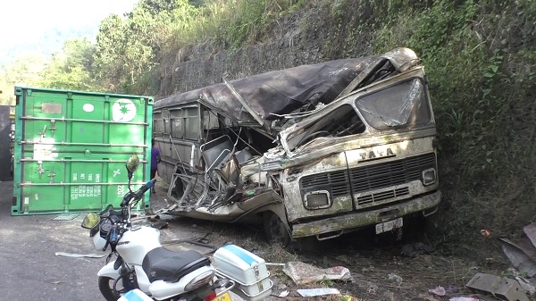 விபத்தில் பஸ் வண்டிக்கும் பாரவூர்திக்கும் பலத்த சேதம் ஏற்பட்டுள்ளதுடன், சாரதியும் காயமடைந்துள்ளார்.