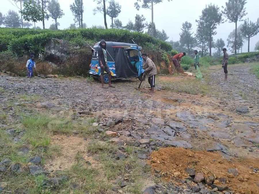இதனால் இப்பகுதி இளைஞர்கள், பாதையில் இருக்கும் குழிகளை இணைந்து தற்காலிகமாக மண் இட்டும் நிரப்பும் பணியில் ஈடுபட்டுள்ளனர்.
