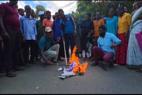 தலவாக்கலை -லிந்துலை நாகசேன தோட்ட பகுதிகளில் உள்ள தோட்ட தொழிலாளர்கள் செவ்வாய்க்கிழமை (19) அன்று மாலை நாகசேன நகர வளாகத்தில் அரசாங்கத்தினால் முன்மொழியப்பட்ட தினசரி ஊதியம் ரூ.1,750 ஐ எதிர்க்கும் எதிர்க்கட்சி எம்.பி.க்களின் உருவ பொம்மைகளை எரித்து போராட்டம் நடத்தினர்.