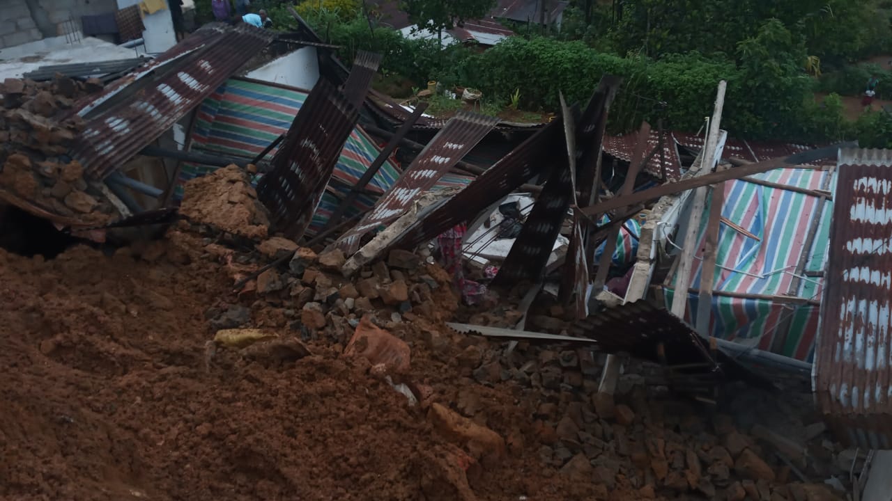 வீட்டின் பின்பக்கமாக இருந்த மண்மேடு ஒன்றே இவ்வாறு சரிந்து வீழ்ந்துள்ளதாக பொலிஸார் குறிப்பிட்டுள்ளனர்.