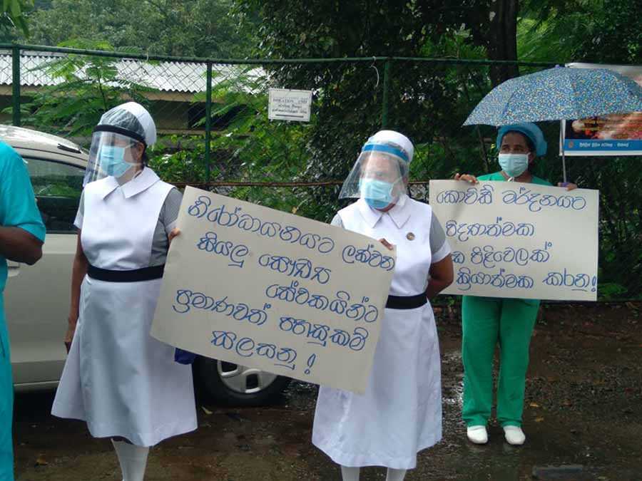 கொரோனா வைரஸ் தொற்றை ஒழிப்பதை நோக்கமாகக் கொண்ட விஞ்ஞான அணுகுமுறையுடன் புதியத் திட்டத்தை செயற்படுத்துதல், வரவு-செலவுத் திட்டத்தில் சுகாதார விடயங்களுக்காக முன்மொழியப்பட்டுள்ள திட்டங்களை அதிகரித்தல், சுகாதார ஊழியர்களுக்கான வசதிவாய்ப்புகளை மேம்படுத்தல், தனிமைப்படுத்தப்பட்டுள்ள பொதுசுகாதார பரிசோதகர்களுக்கு நிவாரணம் வழங்குதல் உள்ளிட்ட கோரிக்கைகளை முன்வைத்தே, இந்த ஆர்ப்பாட்டம் முன்னெடுக்கப்பட்டது.