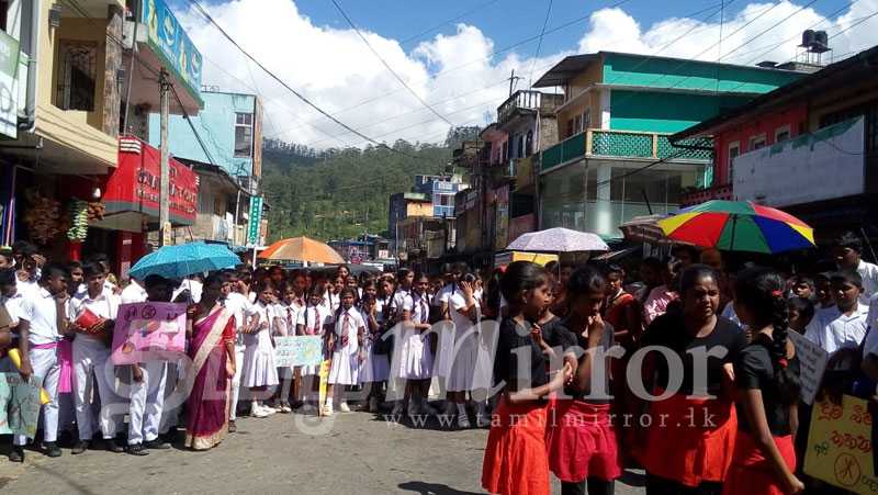 மஸ்கெலியா பொலிஸ் நிலைய பொறுப்பதிகாரி டிரோன் ரத்நாயக்கவின் பணிப்புரைக்கு அமைவாக, மஸ்கெலியா பிரதேச பாடசாலை மாணவர்கள் ஒன்றிணைந்து, போதை பொருள் பாவனைக்கு எதிரான விழிப்புணர்வு வீதி நாடகம் ஒன்றை, மஸ்கெலியா நகரில் நேற்று அரங்கேற்றினர். இதன்போது விழிப்புணர்வு பேரணியும் இடம்பெற்றது. (செ.தி.பெருமாள்)
