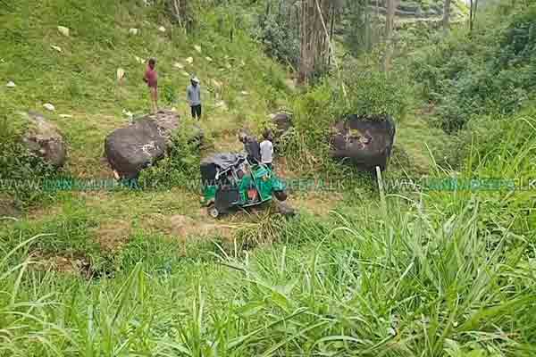 மஸ்கெலியாவிலிருந்து நோர்வூட் நோக்கி அதிவேகமாக பயணித்த முச்சக்கர வண்டி ஒன்று சாலையை விட்டு விலகி செங்குத்தான சரிவில் 25 அடி பள்ளத்தில் விழுந்ததாக பொலிஸார் தெரிவிக்கின்றனர். முச்சக்கர வண்டியின் சாரதியும் ஒரு பயணியும் காயமடைந்து டிக்கோயா ஆதார வைத்தியசாலையில் அனுமதிக்கப்பட்டுள்ளனர்.
