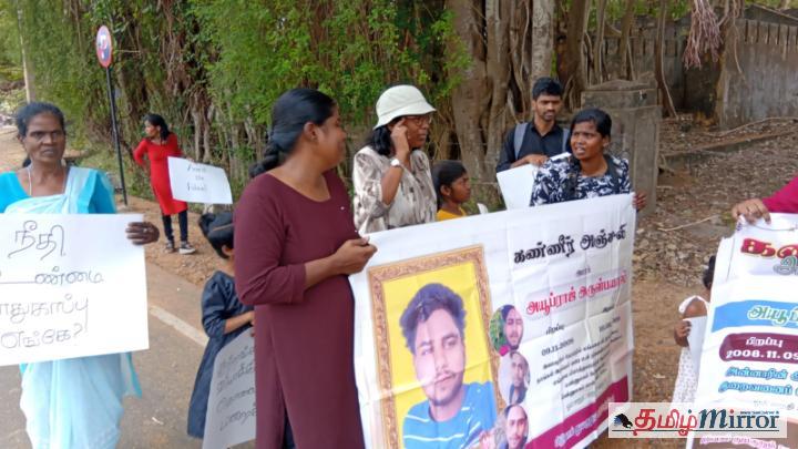 கடந்த பெப்ரவரி மாதம் இடம்பெற்ற இச் சம்பவத்தில் உயிரிழந்த 17 வயதுடைய அருள்பாயஸ் என்ற சிறுவனுக்கு நீதி கோரியே மனித உரிமை ஆர்வலர்கள் மற்றும் சிறுவனின் உறவினர்களால் இந்த ஆர்ப்பாட்டம் ஏற்பாடு செய்யப்பட்டிருந்தது.