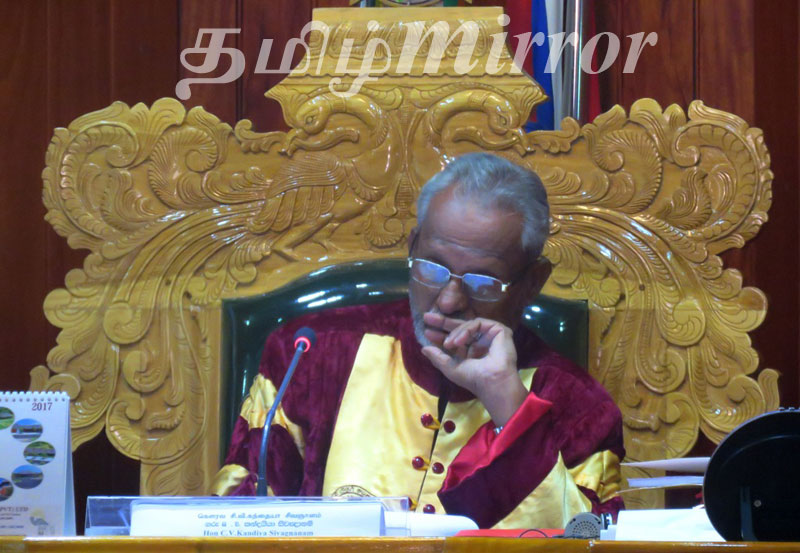 வடமாகாண அவைத்தலைவர் சி.வி.கே. சிவஞானம் அவைத்தலைவராக அவையில் கடந்த 14ஆம் திகதி அமர்வில், பண்டைய கால அரசர்களின் சிம்மாசனத்தை ஒத்த வடிவமைப்பை கொண்டப் பிரத்தியோக ஆசனத்தில் அமர்ந்திருந்தார்.