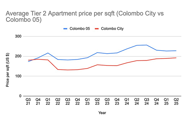 கொவிட்-19க்குப் பின்னர் சுற்றுலா மீண்டும் எழுச்சி பெற்றதாலும், வெளிநாடுகளில் வசிக்கும் பல இலங்கையர்கள் குறுகிய மற்றும் நீண்ட கால வாடகை தங்கியிருப்பிற்காக இங்கு வருவதாலும் வாடகை வருவாய் அதிகரித்துள்ளது. விடுமுறைக்கால தங்குமிடத் துறையில், பலவிதமான முன்பதிவு செயலிகளின் வருகையால் பெரும் மாற்றம் ஏற்பட்டுள்ளது. இந்தச் செயலிகள் அடுக்குமாடி குடியிருப்புகளின் உரிமையாளர்களை முன்னணி ஹோட்டல்களுடன் போட்டியிட உதவுகின்றன. இதன் மூலம், ஹோட்டல்களுக்கு நிகராகவோ அல்லது அதைவிட கவர்ச்சியாகவோ மாற்றுத் தங்குமிடங்களை வழங்க முடிகிறது. இரண்டாவது காரணம், 2019 முதல் 2023 வரையிலான காலகட்டத்தில் நிர்மாணப் பணிகள் குறைந்ததாகும். இதனால், சந்தையில் ஏற்கனவே உள்ள அடுக்குமாடி குடியிருப்புகளுக்கான தேவை அதிகரித்தது. வாங்குவதில் நாட்டம் காண்பித்த பலருக்கு, புதிய சந்தையில் தங்களுக்குப் பொருத்தமான குடியிருப்புகளைக் கண்டுபிடிக்க முடியாமல் போனது. எனவே, குறைந்த விநியோகமும் நிலையான தேவையும் சந்தையில் விலைகளை உயரச் செய்தன.