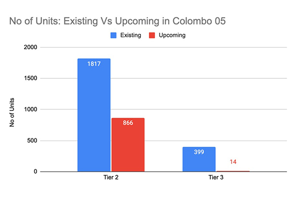 தற்போது, கொழும்பு நகரில் 1ஆம், 2ஆம் மற்றும் 3ஆம் தர அடுக்குமாடி குடியிருப்பு அலகுகள் சுமார் 14,000 உள்ளன. மேலும் 2,566 அலகுகள் தற்போது நிர்மாணிக்கப்பட்ட வண்ணமுள்ளன. கொழும்பைச் சுற்றியுள்ள புறநகர்ப் பகுதிகளில், சுமார் 9,000 க்கும் மேற்பட்ட முடிக்கப்பட்ட அடுக்குமாடி குடியிருப்பு அலகுகள் உள்ளன. மேலும் 3,013 அலகுகள் பூர்த்தி செய்யப்பட்டு கையளிக்கப்படும் நிலையில் உள்ளன. இவ்வாறான குறிப்பிடத்தக்க விநியோகம் காணப்பட்டாலும், அடுக்குமாடி குடியிருப்புகளுக்கான தேவை வலுவாக, தொடர்ந்தும் வளர்ந்து வருகிறது.