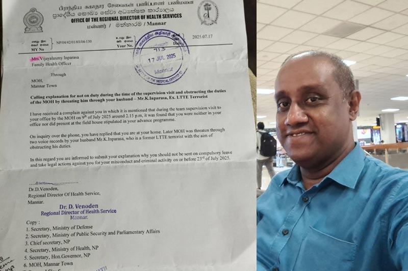 மன்னார் மாவட்ட பிராந்திய சுகாதார சேவைகள் பணிப்பாளர் வைத்தியர் ரி. வினோதன், மாவட்டத்தில் சுகாதார உத்தியோகத்தர் ஒருவருக்கு அண்மையில் எழுதிய கடிதம் பரவலாக எதிர்ப்பையும் சர்ச்சையையும் ஏற்படுத்தியுள்ளது.