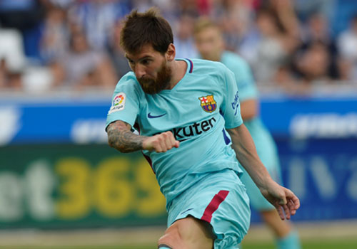 பார்சிலோனா அணியின் லியனல் மெஸ்ஸி, போட்டியின் முதற்பாதியில் தவறவிட்ட கோல்பெறும் வாய்ப்புக்கு