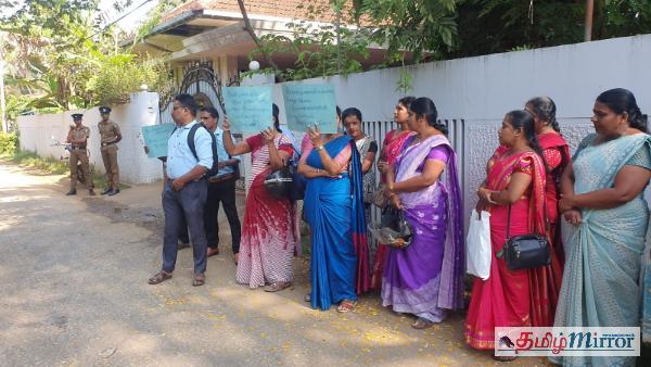 இதன்போது பெருமளவிலான ஆசிரியர்கள் ஒன்று கூடி, பல்வேறு வாசகங்கள் எழுதப்பட்ட பதாகைகளை ஏந்தியவாறு கோஷங்களை எழுப்பி தமது எதிர்ப்பை வெளியிட்டனர்.