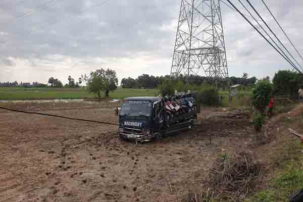 யாழ். நகரிலிருந்து பருத்தித்துறைக்கு மோட்டார் சைக்கிள்களை ஏற்றிச் சென்ற கனரக வாகனமொன்று சிறுப்பிட்டி பகுதியில் வீதியோரம் இருந்த தொலைத்தொடர்பு இணைப்பு கம்பத்துடன் மோதி விபத்துக்குள்ளாகி அருகிலுள்ள காணிக்குள் பாய்ந்த சம்பவம் வியாழக்கிழமை (18) அதிகாலை இடம்பெற்றுள்ளது.