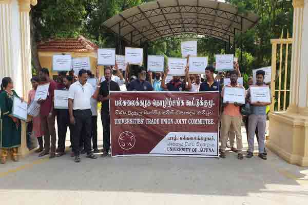 ஒப்புக்கொள்ளப்பட்ட MCA கொடுப்பனவை உடனடியாக வழங்கு உள்ளிட்ட பல்வேறு கோரிக்கைகளை முன்னிறுத்தி யாழ்ப்பாணம் பல்கலைக்கழக ஊழியர் சங்கம் ஒரு நாள் அடையாள வேலை நிறுத்த ஆர்ப்பாட்டத்தை புதன்கிழமை (20) அன்று மேற்கொண்டது