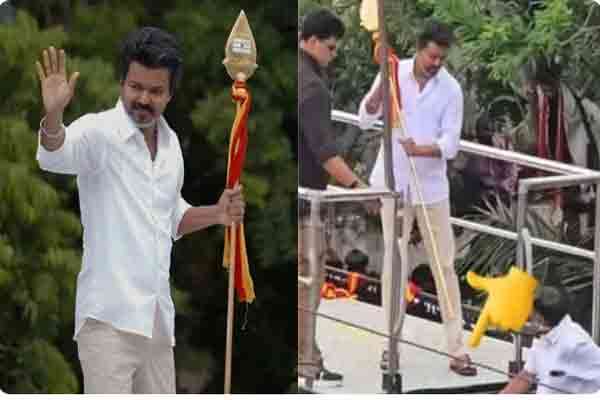 செருப்புடன் வேல் ஏந்திய விஜய்: பாய்ந்து வந்த பாஜக...