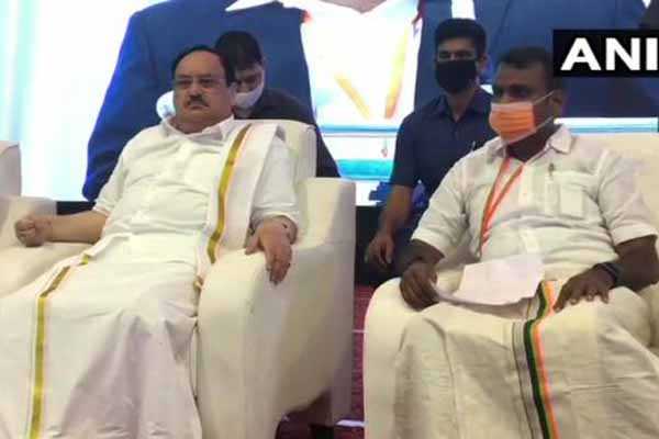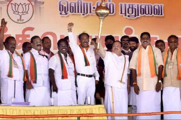 கூட்டணிக்கட்சிகளான என்.ஆர்.காங்கிரஸ் அதிமுகவுடன் பாரதிய ஜனதா தேசியத் தலைவர்