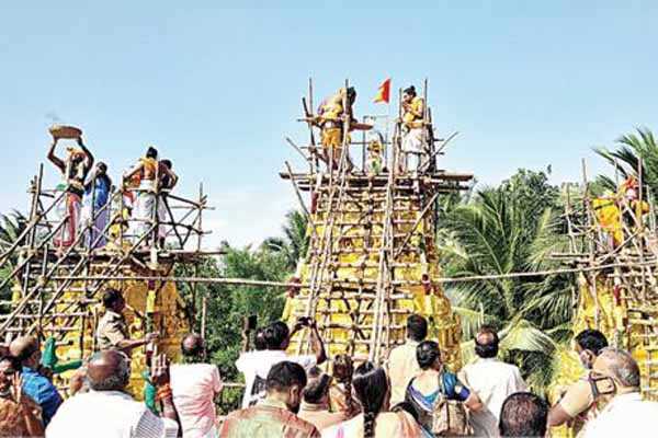 தாழம்பூரை அடுத்த கிருஷ்ணாநகர் பகுதியில் அமைந்துள்ள த்ரிசக்தி அம்மன் கோவிலில்
