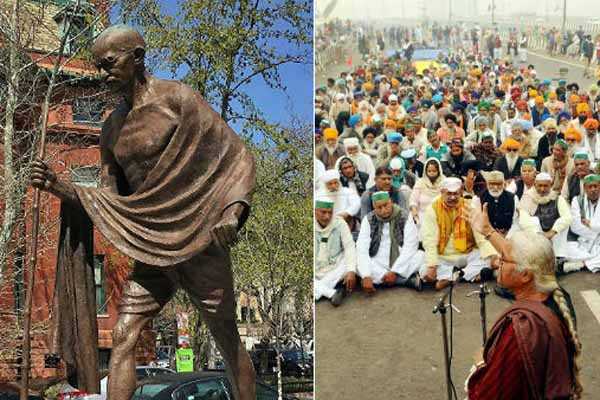போராட்டக்காரர்கள் தேசப்பிதா மகாத்மா காந்தியின் சிலையை அவமதிப்பு செய்ததற்கு
