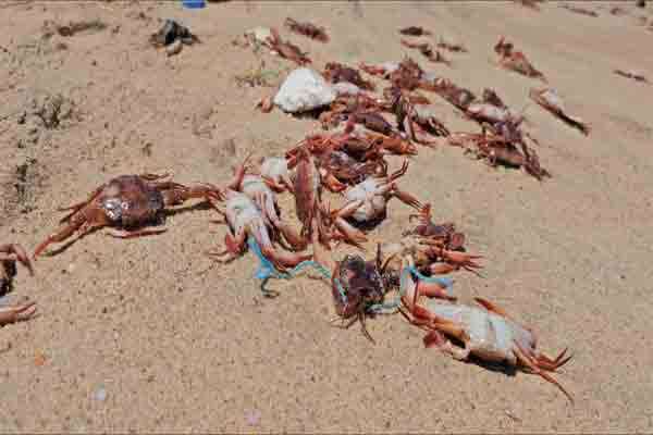 கரை ஒதுங்கும் சிவப்புநிற நண்டுகளால் மக்கள் அச்சம்...