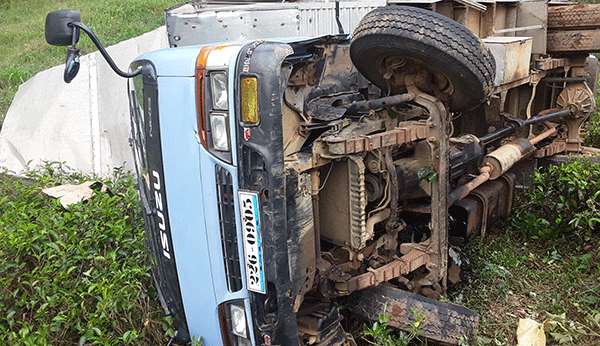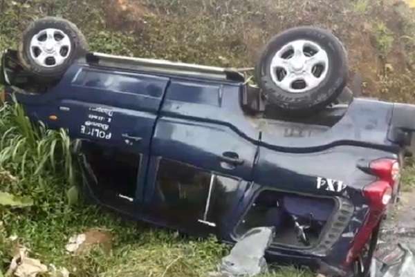 வாகனம் முற்றாக சேதமடைந்துள்ளதோடு, பொலிஸ் சாரதி