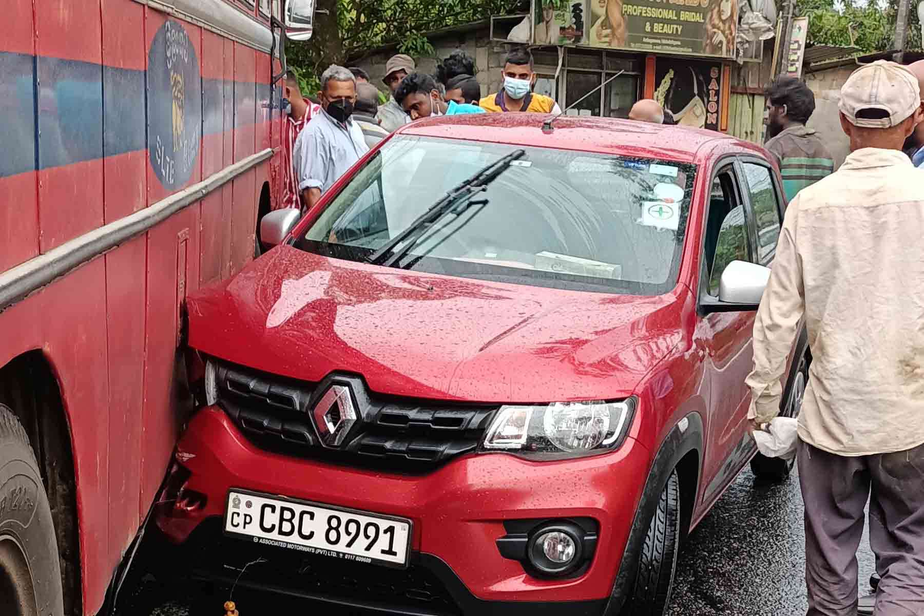 சிவப்பு நிறத்திலான காரொன்றே இவ்வாறு மோதி விபத்துக்கு உள்ளாகியுள்ளது...