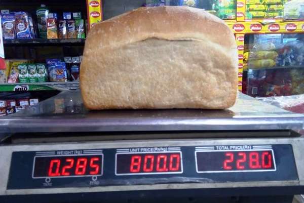 80 ரூபாவிற்கு விற்கப்படும் பாணின் நிறை 285 கிராம் அளவைக் காட்டுவதை