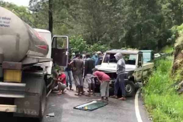 நோர்வூட் தியசிரிகம பகுதியில் பால் ஏற்றிவந்த பவுசரும்- கெப் ரக வண்டியொன்றும் நேருக்கு...