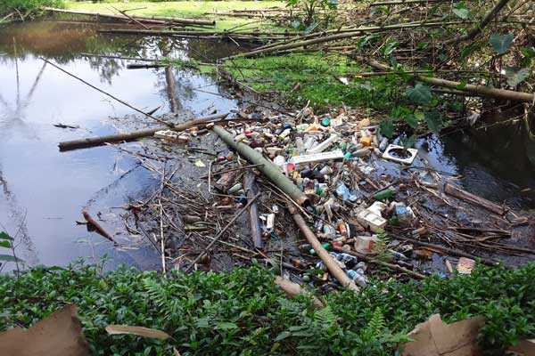மேல்கொத்மலை நீர்த்தேக்கத்துக்கு நீர் ஏந்திச் செல்லும் டயகம ஆகுரோயா ஆற்றில், அதிகளவு குப்பைகள்...