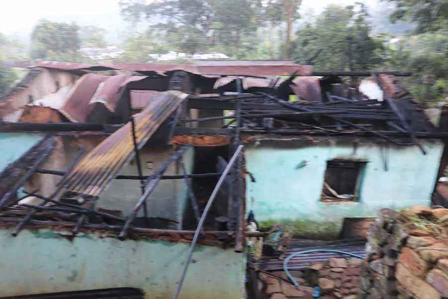 ஹட்டன் பன்மூர் தோட்ட தொழிலாளர் லயன் அறையின் குடியிருப்பு ஒன்றுக்குள்