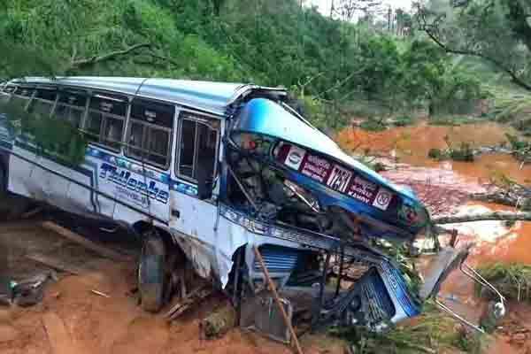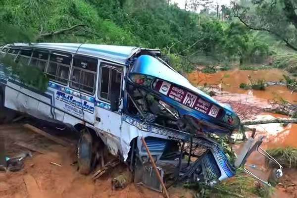 கம்பளை மண்சரிவில் சிக்கிய பஸ்....