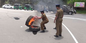 வீதியில் டயர்களை எரிக்க முற்பட்டபோது, பொலிஸார் அதனை தடுத்து நிறுத்தியுதுடன், எரியூட்டப்பட்ட டயரை அணைக்க முற்பட்ட பொலிஸ் அதிகாரி தீ...