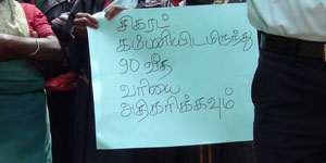 மதுபானம் மற்றும் சிகரெட்டுக்கான 'வற்' (பெறுமதிசேர்க்கப்பட்ட வரி) 90 வீதமாக அதிகரிக்கக்கோரி, நோர்வூட் போஸ்டனில் (அரிசி தோட்டம்), நேற்றுத் திங்கட்கிழமை...