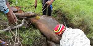 நுவரெலியா குதிரை பந்தயத் திடலிலுள்ள பாதுகாப்பற்ற குழியொன்றில் விழுந்து, சனிக்கிழமை மாலை மீட்கப்பட்ட குதிரை, சிகிச்சை பலனின்றி...