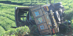 நுவரெலியா பொருளாதார மத்திய நிலையத்திலிருந்து களுத்துறை - அளுத்கம பகுதிக்கு மரக்கறி ஏற்றிச்சென்ற லொறி, வீதியை விட்டு விலகி...