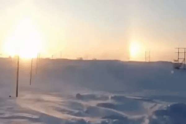 பனி படர்ந்த இந்தப் பகுதியில் இடது பக்கம் ஒரு சூரியன், வலது பக்கம்...