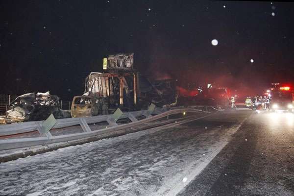 மத்திய ஜப்பானிலுள்ள நெடுஞ்சாலையொன்றில் ஒன்றன் பின் ஒன்றாக குறைந்தது 50...