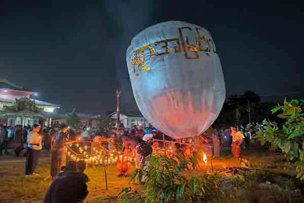 மத்திய மியன்மாரில் தாடிங்யுட் என்ற புத்த திருவிழாவிற்காக...