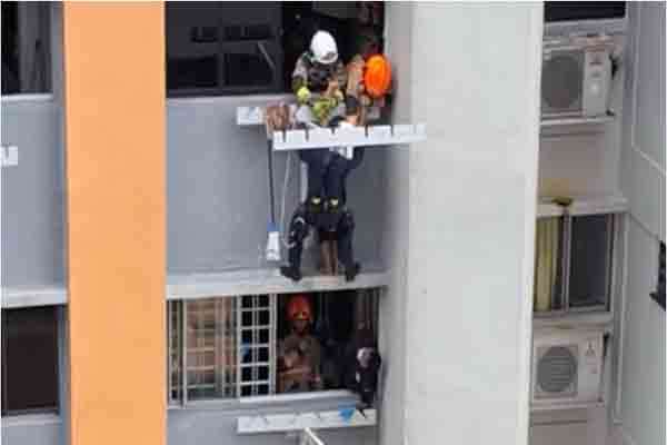 சன்னல் விளிம்பில் நின்றுகொண்டிருந்த பெண் ஒருவர் காப்பாற்றப்பட்டுள்ள...