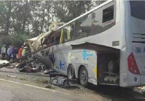 கிழக்கு சீனாவில் நிரம்பிக் காணப்பட்ட பஸ்ஸொன்றும், ட்ரக்கொன்றுக்குமிடையிலான...