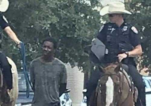 கைவிலங்கிடப்பட்ட கறுப்பரொருவரை குதிரையில் செல்லும் வெள்ளை பொலிஸ் அதிகாரி...