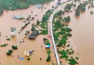 இந்தியாவின் மும்பைக்கருகே வெள்ளத்தால் சிக்கியிருந்த ரயிலிருந்து 1,050 பேரை அந்நாட்டு