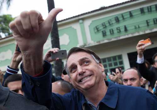 பிரேஸிலின் ஜனாதிபதித் தேர்தலில், கடும்போக்கு வலதுசாரியும் முன்னாள் இராணுவக் கப்டனுமாகிய