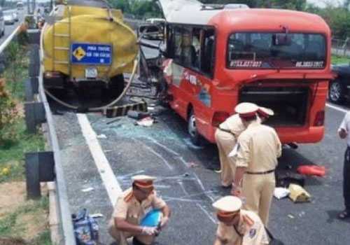 மாகாணங்களுக்கு இடையிலான சேவையில் ஈடுபடும் பஸ்ஸொன்றும் ட்ரக் ஒன்றும், வியட்நாமின்